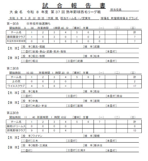 西毛リーグ 試合結果