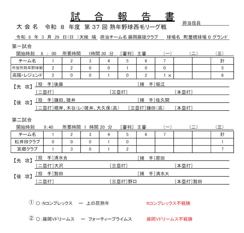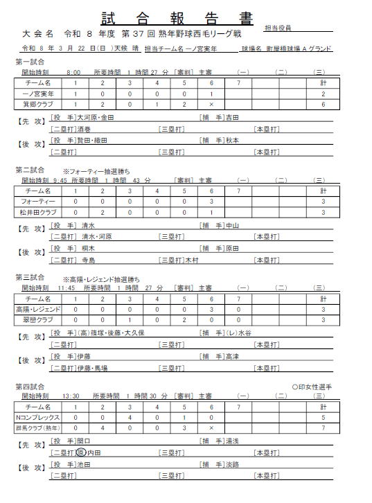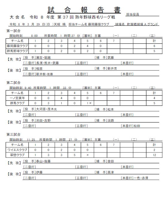 西毛熟年野球愛好会掲示板